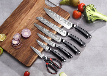 PAUDIN Hammered Premium 7-PC Knife Block Set