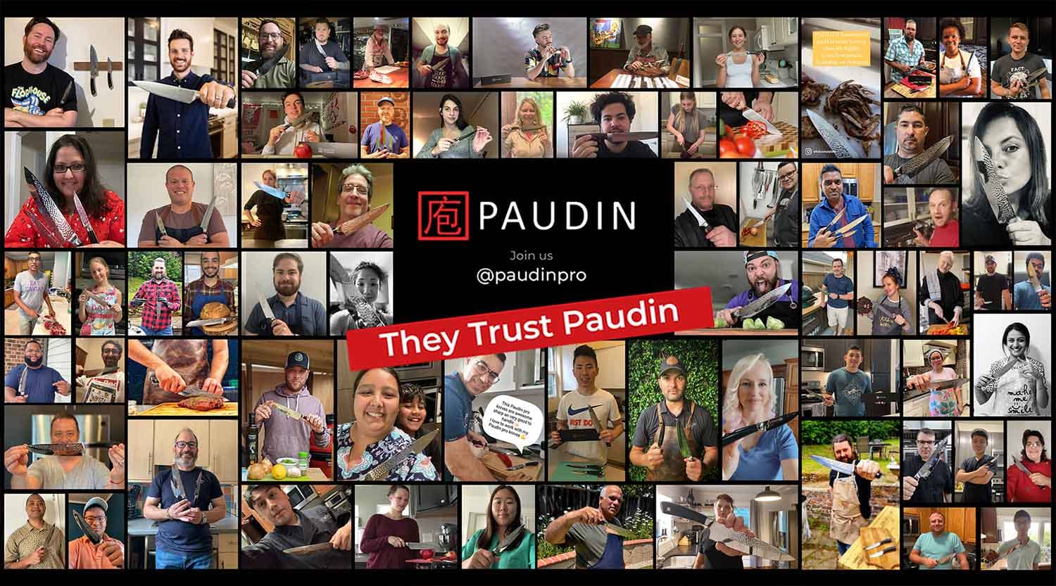 Wir verkaufen nicht nur Messer – wir bauen eine Gemeinschaft auf. Deshalb stehen wir mit einer 100%igen Zufriedenheitsgarantie hinter unseren Produkten. Schließen Sie sich tausenden zufriedenen Kunden an, die Paudin vertrauen, um Freude und Leichtigkeit in ihre Küchenabenteuer zu bringen.